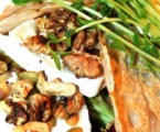 Galetten er en klassisk fransk madpandekage lavet på boghvedemel, som oprindeligt blev serveret med emmentaler-ost, en skive skinke og et æg. Her er en lidt anderledes udgave, der bestemt ikke er mindre lækker end den originale. Selleri, squash, aubergine, gedeost og valnødder er en udsøgt kombination af forskellige smage, der betegnes som særligt delikat.