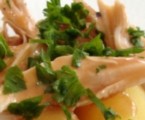 - Når kyllingerne er færdige, skal de parteres, og derefter anrettes i et fad.