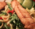 Foto og opskrift er med stor forsigtighed tilpasset og oversat fra denne side: http://nattmiasmatochtraning.blogspot.se/2012/01/grillade-kyclingspett-med-het-spagetti.html. Du kan på denne lækre madblog finde mange flere spændende opskrifter.